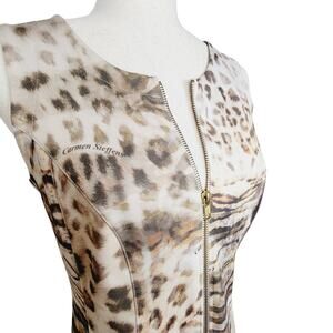 Carmen Steffens Ponte Knit Animal Print Fit & Flare Sleeveless Dress. Goldtone front zipper. Sleeveless.