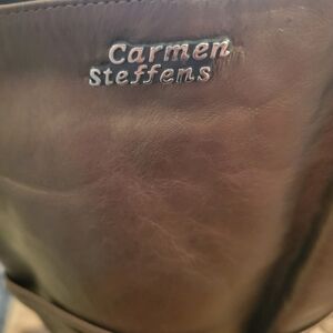 Carmen Steffens Heeled Boots, beautiful boots that tie around leg, elastic at back of calf area for extra stretch and stay, has some peeling inside as shown in pictures, but these are beautiful boots, size is 39EUR