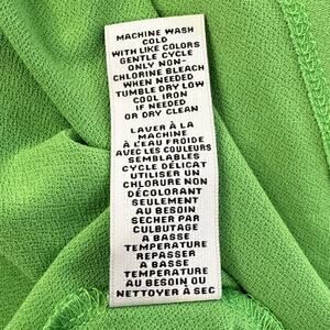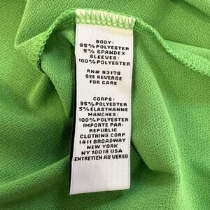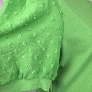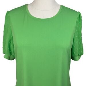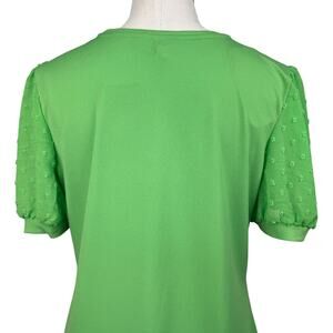 Carmen by Carmen Marc Valvo Women's Blouse Size Large Green Sheer Puff Sleeve Mixed Media Stretch Knit Top