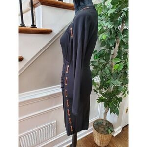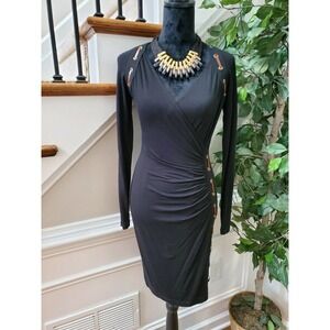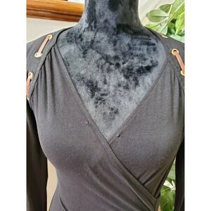 Carmen Women's Solid Black Rayon Long Sleeve V-Neck Knee Length Dress Size Small
