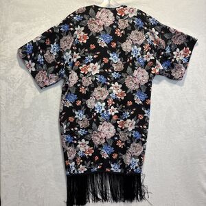 Carmen Women's Swimsuit Coverup Black Tropical Floral Fringe Open Front Kimono
