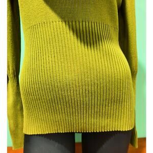 Elevate your wardrobe with this stylish Carmen by Carmen Marc Valvo green sweater. This sweater features a flattering cowl neck and long ribbed cuffs, adding a touch of elegance to your look. The ribbed body provides a comfortable and chic fit, perfect for any occasion.