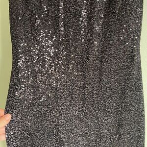 Carmen Marc Valvo Black Beaded Sequin Evening Formal Gown Dress 6