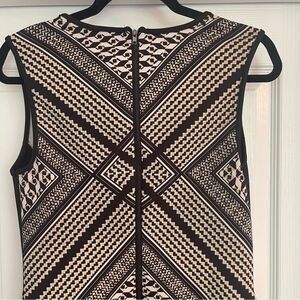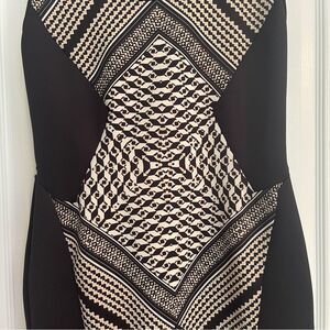 Carmen Marc Valvo Black and Cream Geometric Stretchy Dress