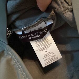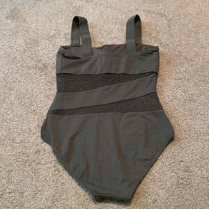 Carmen Marc Valvo army green One Piece women's mesh cutout swimsuit Size 12 good condition