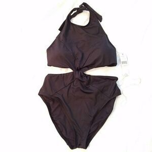 For eye-catching warm weather style, hit the beach in the Carmen Marc Valvo Halter High Neck Monokini. This one piece swimsuit boasts a high neck and cut out details at the front and sides in classic black for timeless swim style.Halter High Neck MonokiniTies at NeckBack ClosureRemovable Soft CupsSwimsuit Fabric Content: 84% Nylon/16% SpandexHand Wash Cold, Line Dry. Worn once and the tag came out can't find it.  No flaws