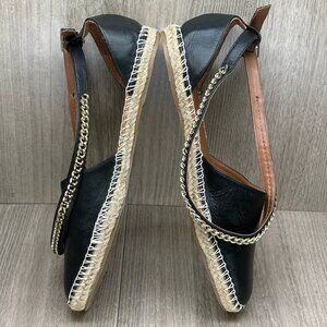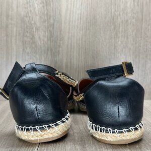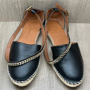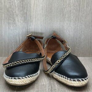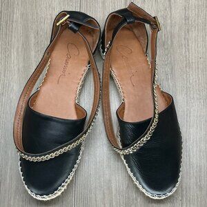 Carmin Sandals Womens Sz 39 Close Toe Gladiator Espadrille Flats Leather Black