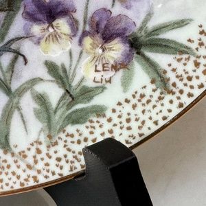 Brand new; never used. No chips or cracks. It has been wrapped & stored in a storage room. A vintage W. L. George fine china plate in 1992 series - Symphony of Shimmering Beauty. Plate's title is Carnation Serenade by Lena Liu. Plate number is 6733A. Plate is rimmed in 22-carat gold with gold highlights. Plate measures 8.5" inch in diameter. Measurements are approximate. Selling plate only.