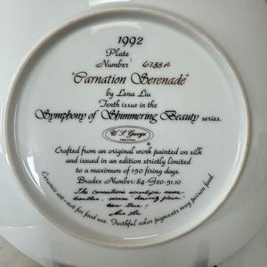 Carnation Serenade by Lena Liu Symphony of Shimmering Beauty 1992 Plate # 6733A