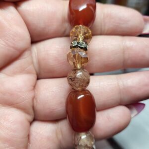 Carnelian Stretch Bracelet offers a bold statement piece with genuine Carnelian beads, Crystal spacers and CZ silvertone spacers. The elastic band ensures a snug, comfortable fit for wrists of various sizes, allowing for easy wear and removal without compromising style. The vibrant reddish-orange beads will be an eye-catching addition no matter the occasion.