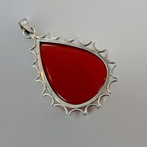 Carnelian Pendant, Sterling Silver, Vintage Pendant, 2" Long, Large Stone, Red