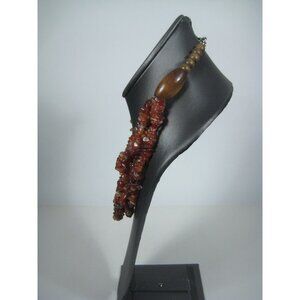 Carnelian Stone Chip Multi Strand Beaded Necklace Wooden Accents Boho Chic 21in