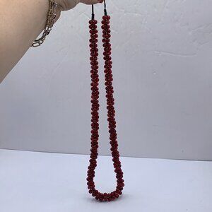 Carnelian Stone Mala Beads Necklace Drawstring Closure & Floral Zippered Pouch