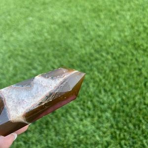 Carnelian tower. Approx 3.5” x 1.5” and 6.5oz (185g). Natural-looking dent on one corner (best seen in photos #8 and #9)