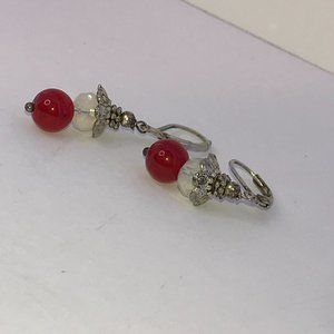 These Carnelian and Opalite Lever back Earrings are handmade. The stones measure about 8mm round each. The opalite beads are faceted where as the carnelian beads are round. The findings are sterling silver as are the lever back ear wires.