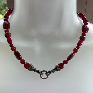 Carnelian red jasper, carnelian and red coral multi gem sterling silver necklace