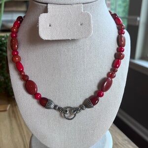 Carolyn Pollack Relios sterling silver carnelian, red jasper and red coral multi-gemstone necklace with pendant/enhancer from the Sincerely Southwest Collection