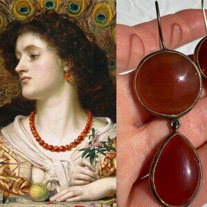 Lovely vintage, antique style carnelian/amber double drop earrings by Jerusalem Bazaar. Great for an ancient roman costume/cosplay! Some photos are from the seller I originally bought them from, I no longer have the box. See photos.