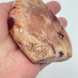 Carnelian agate druzy standing raindrop teardrop crystallized quartz 3.84” pink orange red white