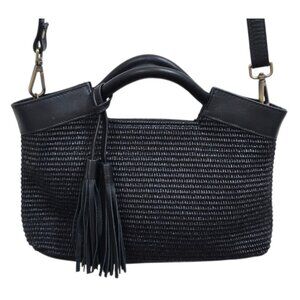 Carner Hill Black Woven Handbag Leather Trim Tassel Accent Crossbody Shoulder Purse Structured Chic The Carner Hill Woven Handbag is a stylish shoulder purse perfect for women looking for a chic and functional accessory. Made with black leather trim and tassel accents, this handbag exudes sophistication and elegance. The structured design adds a touch of versatility, making it suitable for various occasions and outfits. Perfect for carrying your essentials in style, this handbag from Carner Hill is a must-have for any fashion-forward woman. Dimensions: Approx LxWxH: [L13"xW2.5"xH7.5"];  Shoulder Strap Drop: 24'' Color: black Material: leather  The wearing photo is borrowed from the store. It’s in a different color, but it can serve as a reference for the silhouette. Color in photos may slightly differ from actual item due to lighting and/or screen setting Excellent pre-owned condition . As shown in photos. Reasonable offers are welcome! Any questions/concerns please state in direct messages.