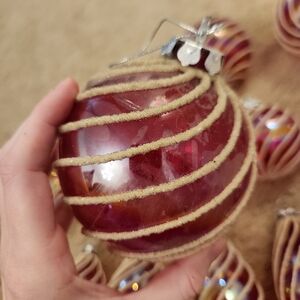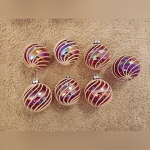 Carnival Art Blown Glass Christmas Ball Ornaments Red Swirl White Set Of 7 READ