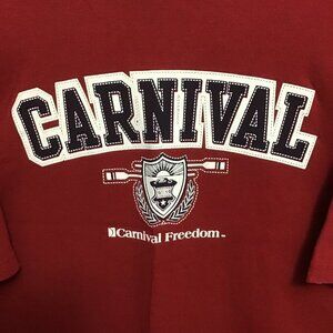 3/$18 Red short sleeve t-shirt by Carnival Cruise Line with Carnival Freedom on the front of it. It is size XXL and measures pit to pit 24.5 inches and length is 33 inches. Good condition. Could be unisex.