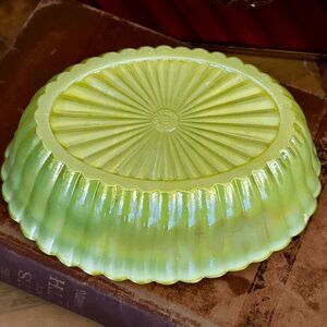 This vibrant Rooster on Nest was produced by Rosso Glass using the classic Westmoreland rooster mould first introduced in 1983. Made in a glowing Carnival Dandelion Yellow, this piece is blacklight reactive, lighting up with a bright cadmium-style glow under UV—perfect for collectors who love UV-reactive or carnival glass.