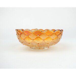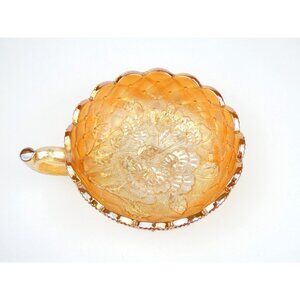 Carnival Glass Iridescent Marigold Rose Bowl With Handle Iridescent Diamond Patt