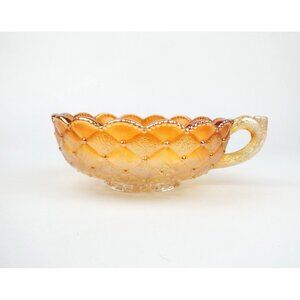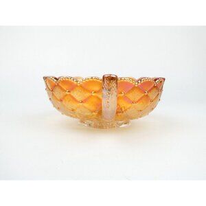 Carnival Glass Iridescent Marigold Rose Bowl With Handle Iridescent Diamond Pattern Vintage Collectible Dish in condition.