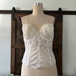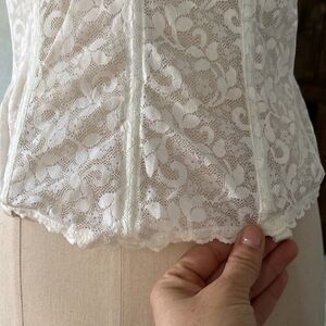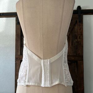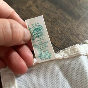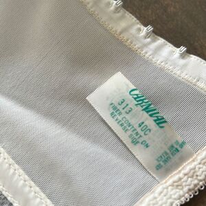 Has a little pin that has pearls in the center Hand stitched and the bottom 2 front and 2 back to insert the strings like a garter good condition minor stain in the inside see pict