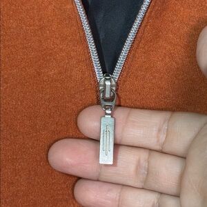 Carnoustie lined quarter zip, pull-over, golf vest. Men’s size Medium in a burnt orange color. Fully lined in a dark, almost black, charcoal gray. Pre-owned condition. Minimal amount of wash-wear.