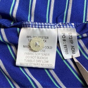 Carnoustie Tech Polo Shirt Size XL. Excellent used condition. Blue, gray and teal,striped short sleeve polo with 3 button front. Vented sides. Measures chest 49”, length 31.5”, sleeve 11”.
