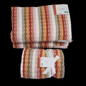 Caro Home 4pc Autumnal Multicolor Striped Cotton Towel Set 2 Bath 2 Hand Quick Drying