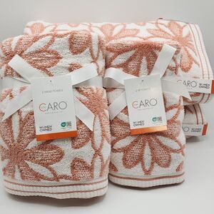 Caro Home 6pc Daisydays Cotton Bath Towel Set 2Bath 2Hand 2Tip Rose And White