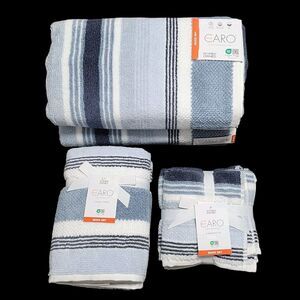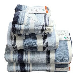 Caro Home 8pc Blue And White Striped Cotton Towel Set 2 Bath 2 Hand 4 Tip NEW