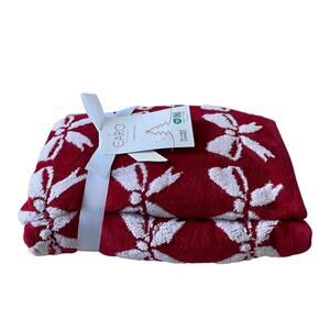 Caro Home CHRISTMAS BOW Hand Towels Set of 2 Red & White Holiday Decor