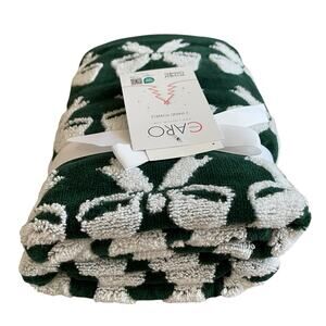 Caro Home Christmas Bow Tip Towels Set of 2 Green & White Holiday Glam New