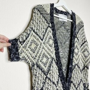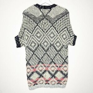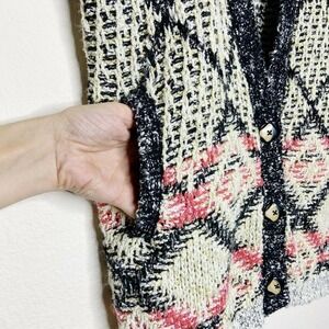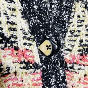 Beautiful cardigan by Carol Anderson by invitation only. Three tortoise shell type button closure. Two front buttons. Short dolman type sleeves. Colors are shades of black, white, cream, pink and a touch of yellow. So pretty! All measurements are approximate, taken flat and closed.Pit to Pit 20"