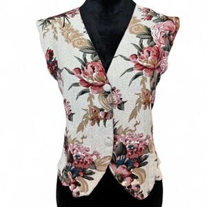 Carol Anderson Tapestry Floral Vest Cream Baroque Brocade Waistcoat Large
