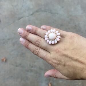 Carol Brodie Rarities Gold Over Sterling Silver Pink Coral Flower Daisy Ring 7