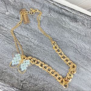 Carol Dauplaise Butterfly Chunky Link Necklace Gold Tone Beaded