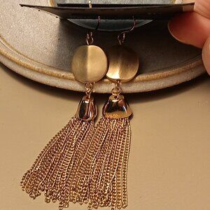 Carol Dauplaise Stein Mart gold tone chain tassel drop earrings - NWT