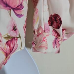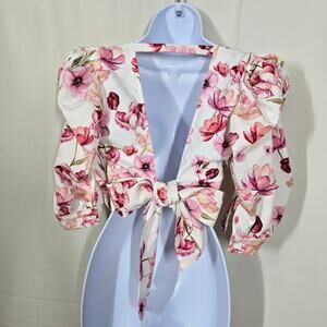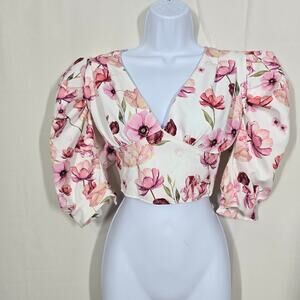 Carol Ginter White and Pink Floral Crop Top Size SmallV-neck