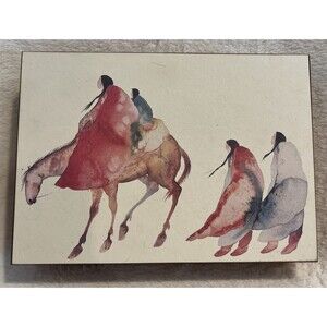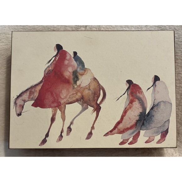 The Carol Grigg Native American Art red Velvet Lined Cedar Box/jewelry box is a beautifully crafted wooden jewelry box featuring a multicolor design. The box has dimensions of 2 1/2 x 9 x 7 inches, making it the perfect size for storing small items like jewelry or other trinkets. The red velvet lining adds a luxurious touch to the box, while the cedar material provides a subtle aroma. This unique piece combines beauty and functionality, making it a great addition to any home decor. This piece is in amazing condition with no chips or nicks in the wood.
