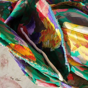 The shoulder pads can be removed and other than one small area that needs to be stitched by the zipper. This dress is as beautiful as it was and it's day. Likely a washable poly fabric. Price reflects and is FIRM.