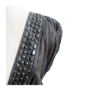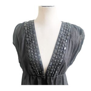 Carol Little 100% Linen Tunic Black Beaded Deep V Neckline XL Party Cocktail