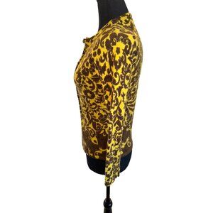 Carol Little Lambs Wool Angora Cardigan Mustard Yellow Brown Paisley Sweater S