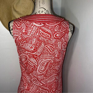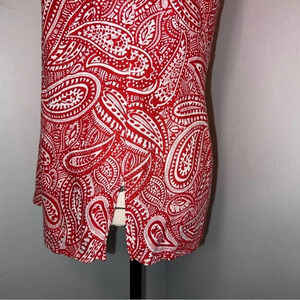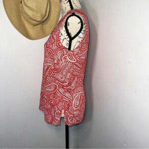 Carol Little, M, linen blend,Paisley geometric scroll print notch Vneck tank top with hem vents