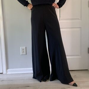 Carol Peretz Black silk Wide Leg High Waisted Trousers pull on size 6 luxury