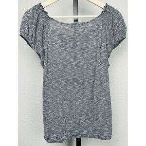 Carol Rose Top Short Sleeve Ruffle Smocked Blouse Gray Large Peasant Boho Summer